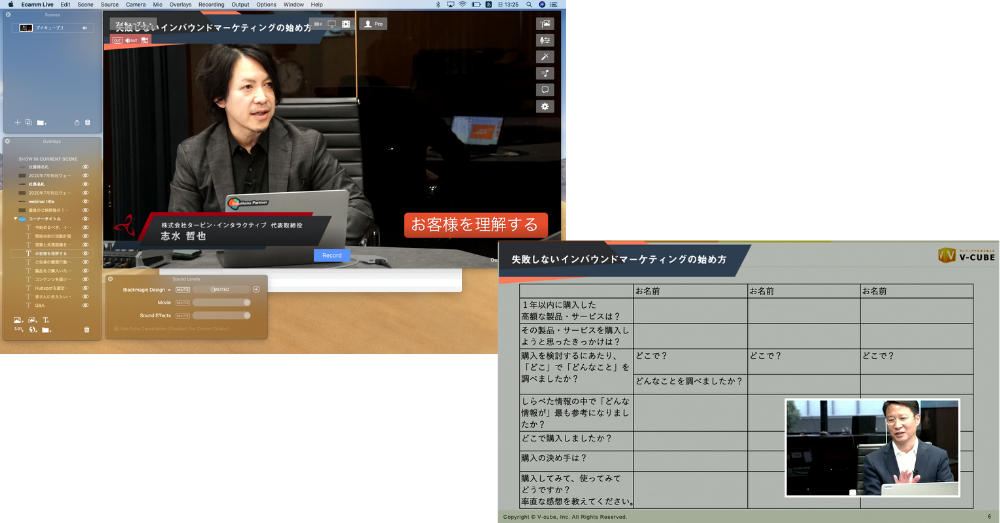 テレビ番組はテレビ制作のプロが研究し尽くしているものなので、いい画づくりを考えていく上では、テレビ番組を研究することが一番手っ取り早いです。テレビ番組のノウハウを少し借りることで、ウェビナーを彩ることができるのではないかと考えています。さらに、ライブ配信アプリを使い、今何を話しているかテロップを表示させたりすることで、音が切れてしまった方、途中から参加された方に配慮することもできます。