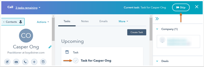 - [次へ] をクリックして、キュー内の次のタスクに移動します。タスクを未完了のままにすることもできます。後で処理するタスクを離れて次のタスクに移動する場合は、[スキップ] をクリックします。