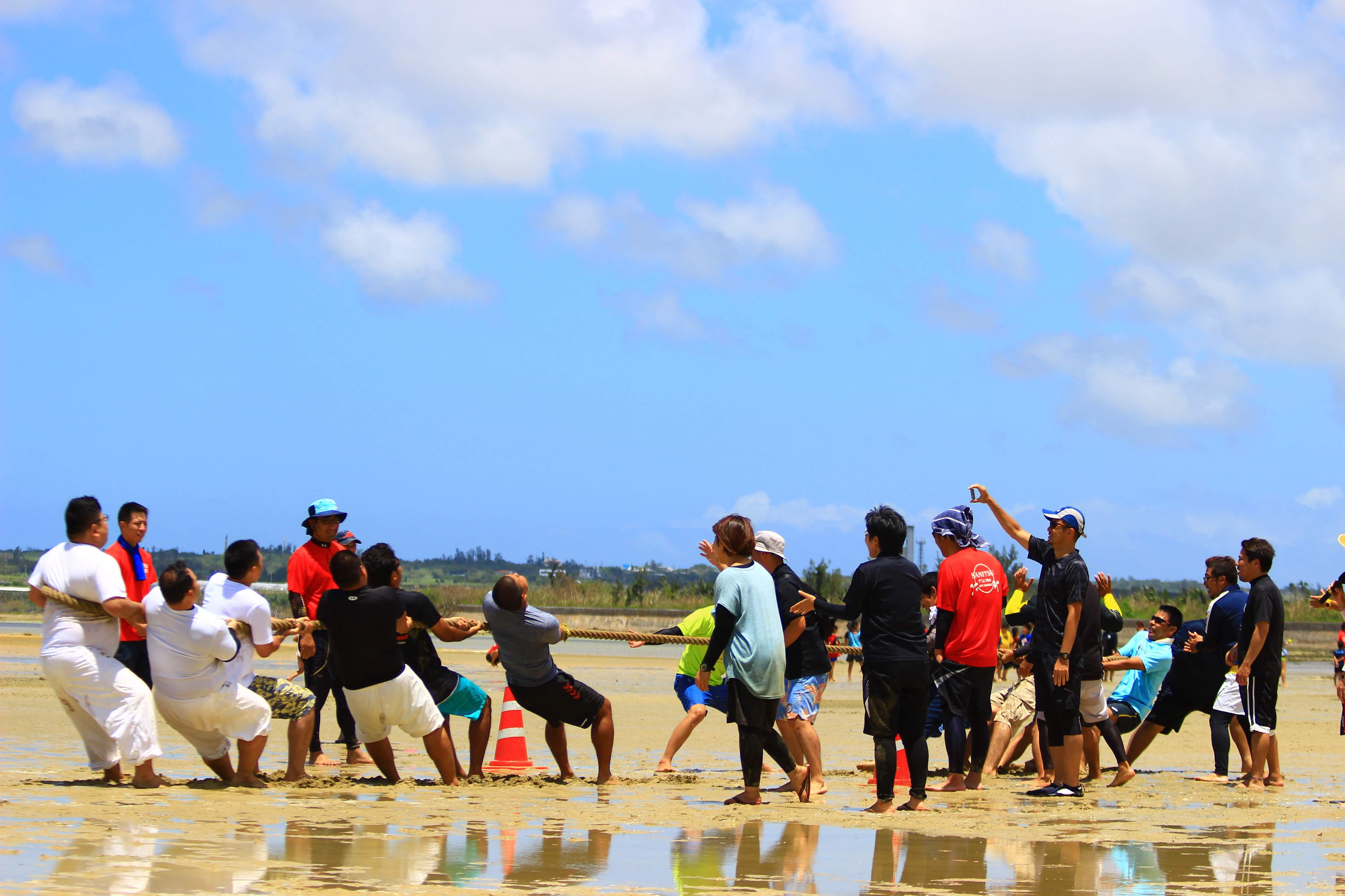 ちなみに朝の9時から行われるこのサニツ浜カーニバル、昼の2時頃にもっとも干潮となります。広い与那覇湾全体が歩いて渡れそうなほど浅瀬になるのは圧巻です!